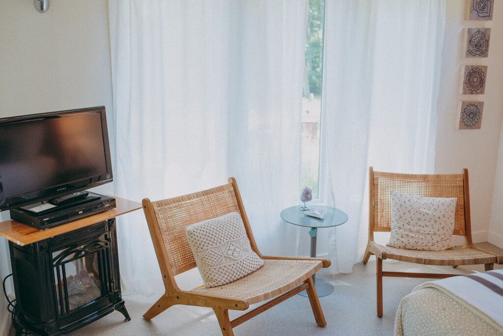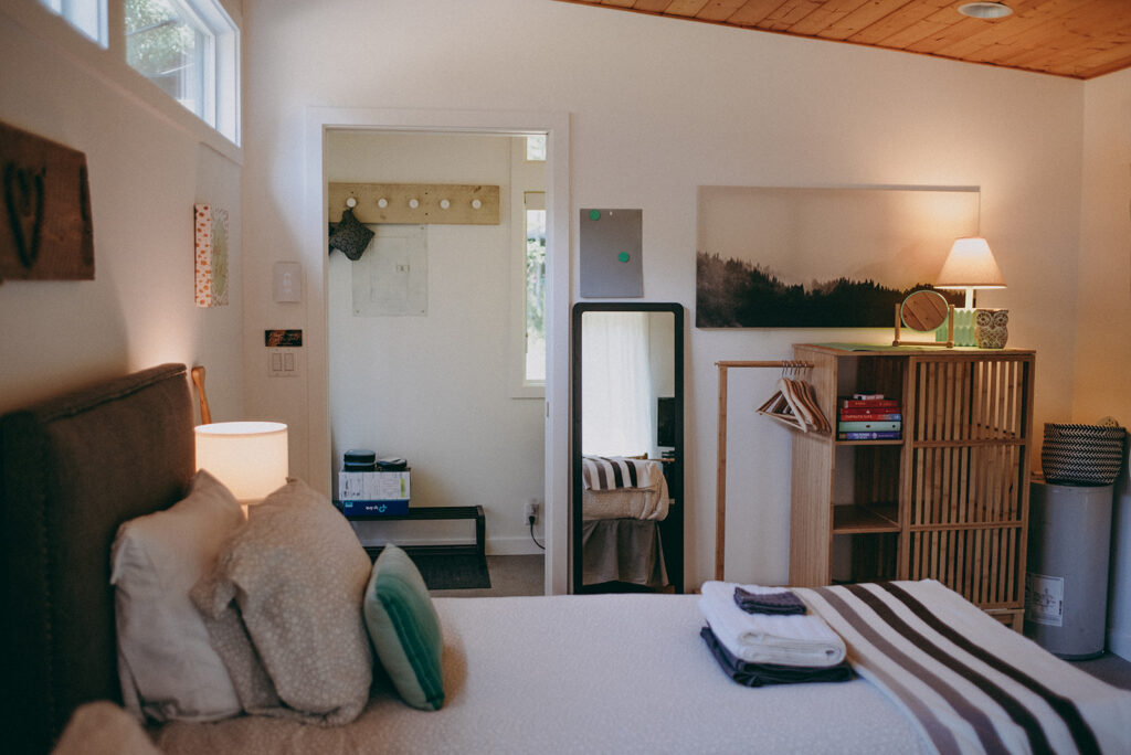 This cozy room is the perfect space for solo travelers. The window opens to a view of our property and the comfy bed offers a space for restful sleep.